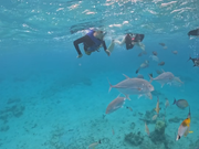 旦那は泳げるけど私は25メートルプールがやっとの人。海では怖くて浮き輪なしで足の届かないところに入ったことがありませんでした。今回途中から救命胴衣なしで泳いで自分でもびっくり。潜り方教えてくれると思っちゃってたので、言われるまであまりしない方がいいかなぁと真面目に思ってしまっていたらあっという間に1時間すぎてたので、次回機会があれば最初から潜る挑戦をしてみたいです(^^)でも同じ水面からの観察でも