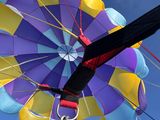 思ったより揺れは少なくて、風に乗っているというより、空に吊られて静かに漂っている感覚に近い。写真を撮る余裕も出てきて、見上げると丸いパラシュートが空に綺麗に映えていて、それだけでもテンションが上がった。降りてきた時は一瞬で終わった感じがして、「もう少し乗っていたかったな」と思ったくらい。怖さよりも、気持ちよさと景色の方が記憶に残り、何より空の心地よさに気づけた体験だった。
