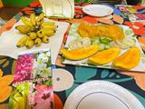 40分程度説明を聞いて最後にフルーツを食べて、トータル1時間くらいです。外は暑いですが、たくさん歩くわけではないのでご高齢の方でも問題なく参加できると思います。参加できるツアーがなくて悩んでいる方にぜひおすすめしたいです。