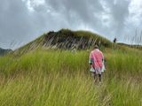 曇り時々雨のあいにくの天気でしたが、メインイベントのハイキングの時にはどうにか止んでいて、無事に歩けました。雨模様なのでカッパを貸してもらいました。