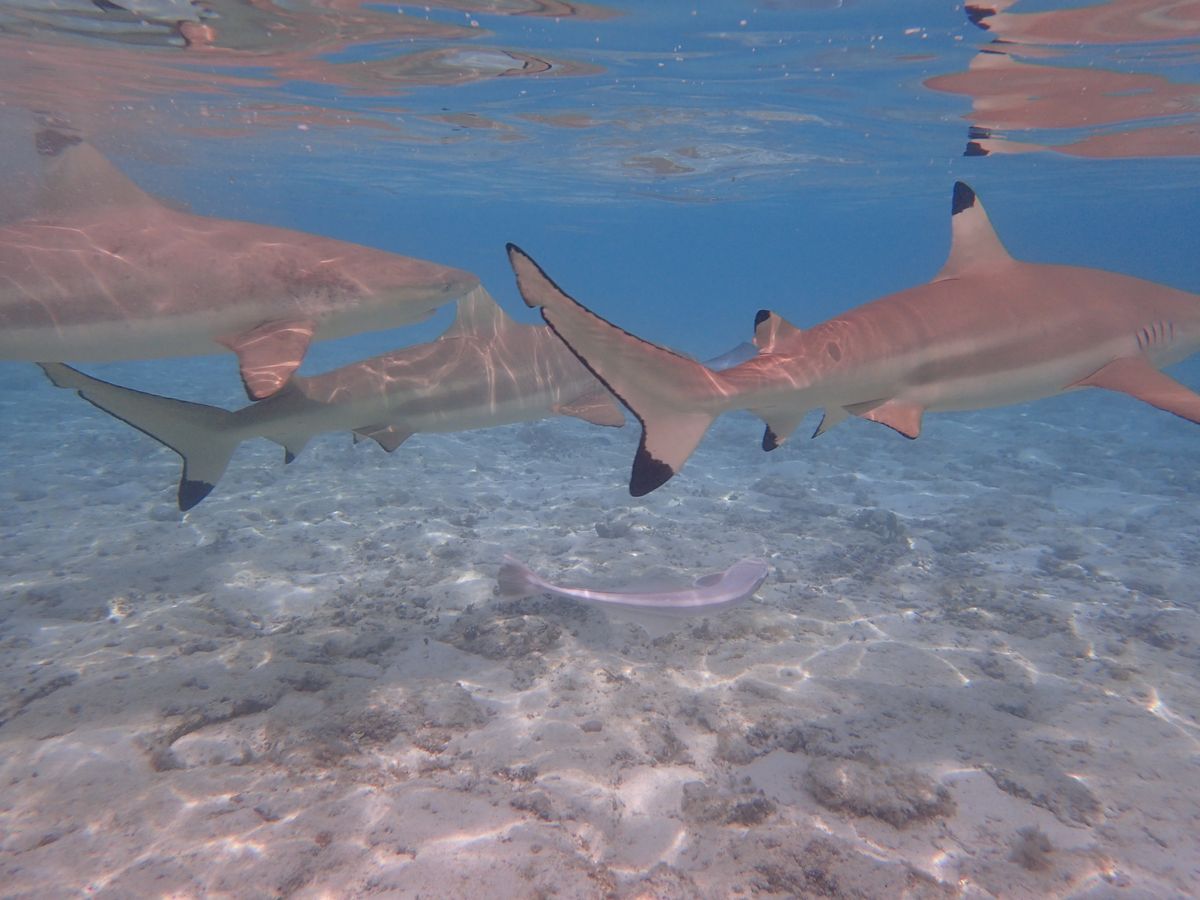 合計4回のシュノーケリングでエイ、シャーク、マンタ、熱帯魚を見ることができました。モツでの昼ごはんも美味しかったです。英語もフランス語もできませんがなんとかなりました。私達以外は2組の若い外人の二人連れでした。