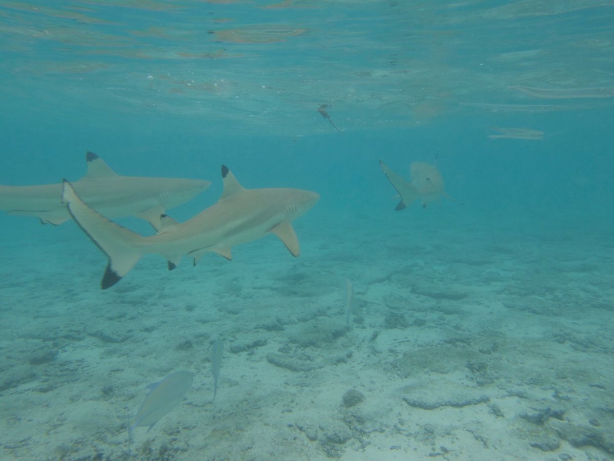 サメやエイと一緒に泳げる体験は感動です!モツでのBBQランチはタヒチで食べた中でNo.1のおいしさでした!焼き魚、生魚、バナナ、ココナッツ、タピオカなどタヒチらしい食材を満喫できます。