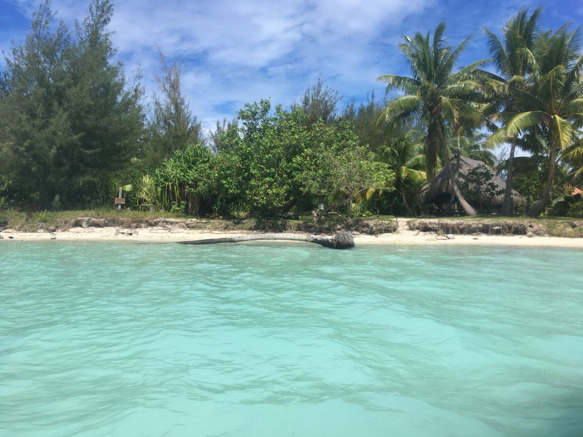 明け方に眠れないほどの雷雨があり、当日も出発時は雨で悲しい気持ちでスタートしましたが、シュノーケルスポットに着くと天気は明るめのくもりになっており、モツに着くと今度は晴れてきました!タヒチは短い間にコロコロ天気が変化します。