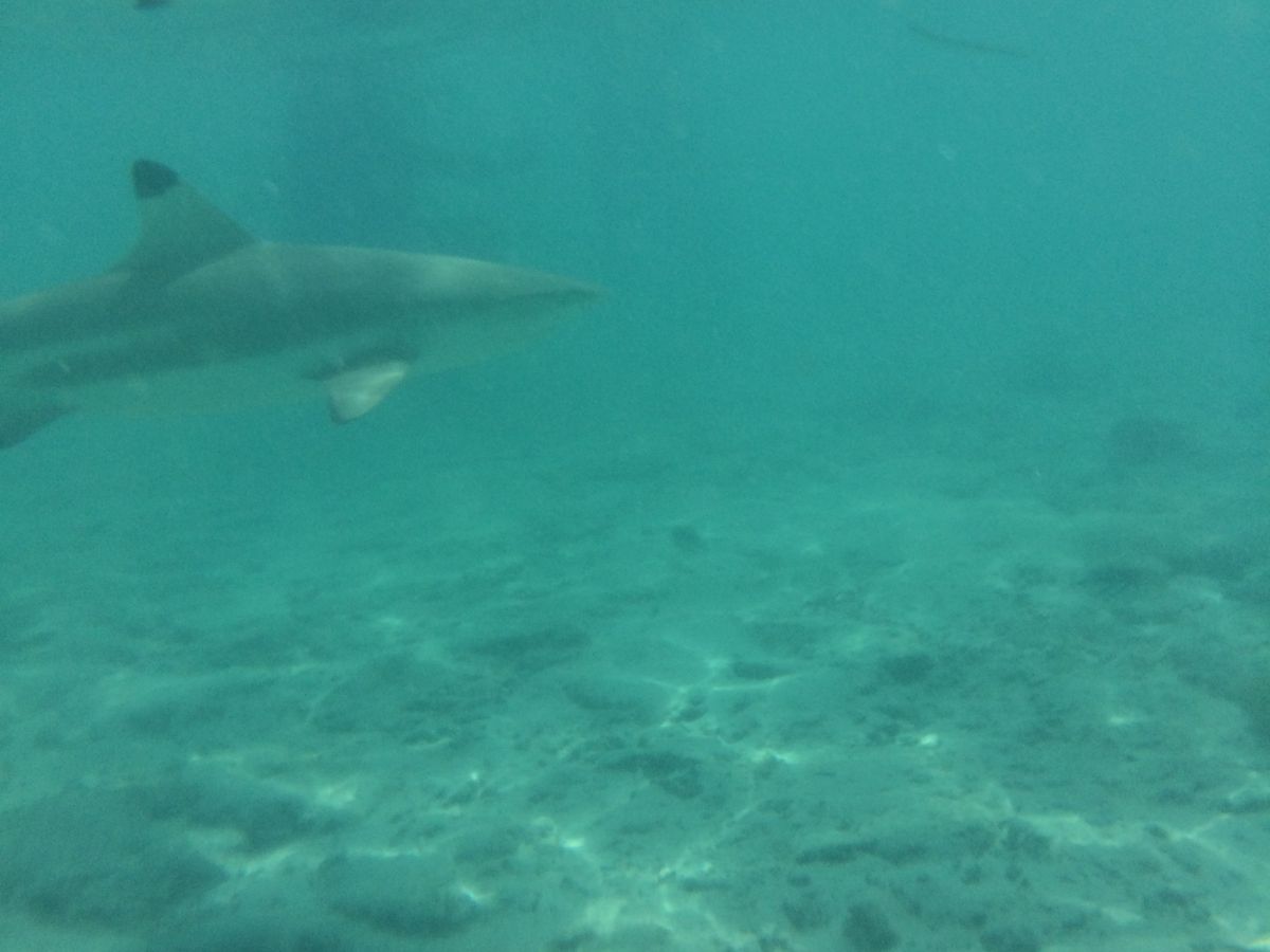 お店に着くと、数名の方が先にいらっしゃっていて、使用する道具のサイズチェック等を実施していました。書類記入して、経験本数(50本くらい)を伝えると、使用するBC、レギ等(さすがに結構使い込んだやつが多いですね(笑))を確認してすぐに車で移動。いつもの(?)ボート乗り場で乗船して、船内の移動中もリラックスした雰囲気で、ブルーホールへ。さすがにきれいでした。そのあとはGABビーチでのんびりと3度も亀に遭遇したり、サメを見かけたり、水底で写真を撮っていたら、すぐ背後をサメが通っていたらしく「食べられるかと思った」とEXIT後に言われたり。2本終わった後は「3本目はどう?」「明日も行かないか?」とのことでしたが、PMはホテル前の海でシュノーケリングしたかったので、それはまた次回に。楽しく潜って満足でした。