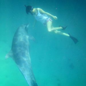 フリーダイブはあまり上手では無いのですが、イルカの方がこちらに合わせて遊んでくれるのでピッタリ寄り添って泳いでくれて本当に感激でした。