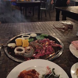 量も多く、ビーフステーキ、チキンステーキ、野菜、ロブスター、イカ、ドリンクはミラーライトで薄く物足りないですが、いいと思います。ビールはすぐに温くなるので、注意が必要でした。煙、炎もしっかりでます。ここへ行くと、身も服も洗う必要がでます。トイレが壊れていて、通り離れた、ショッピングセンターまで行くしかありませんでした。