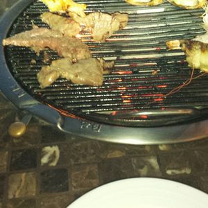 某BBQのように店員さんに急がされて勝手に焼かれることもなく、着いたらテーブルに火が起こされていて、焼く網もとっても大きくて効率もいいし火力も十分。お皿にきちんとラップのされた具材が置いてあり、到着したらすぐ開始できます。