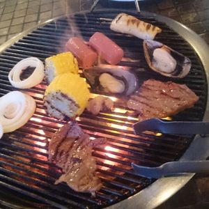 雨風の中でしたが、お料理は美味しく満足です。お肉の他、海鮮も充実していました。どれも美味しかったです。またショーも楽しめました。
