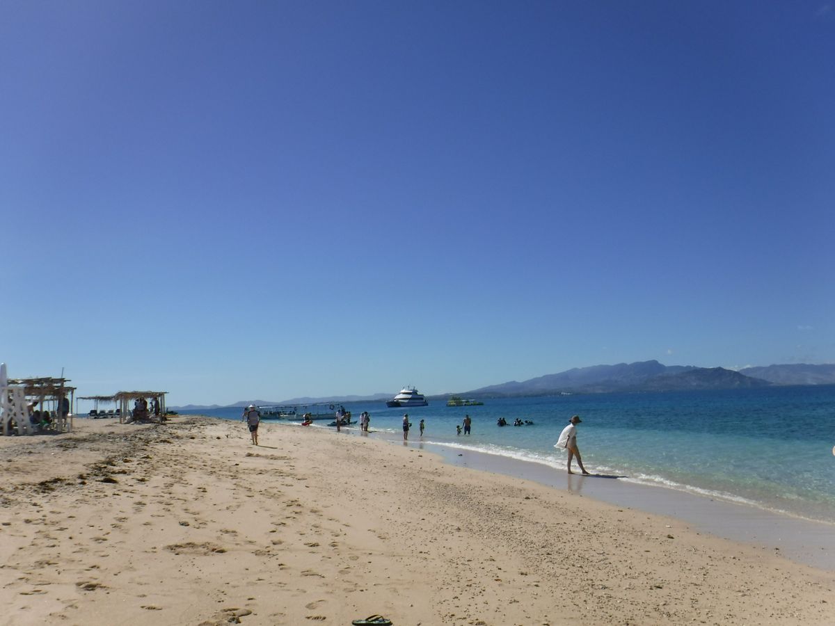 フィジーは初めての訪問です。3階建ての船に乗り30分程で到着。現地の演奏で歓迎されます。島を歩いてみましたが、1周10分もかかりませんでした。シュノーケリングをしました所、魚はあまりいなかったです。チョロチョロぐらい。海は綺麗です。