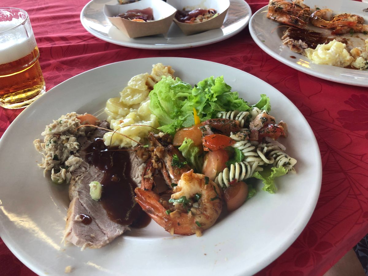 小銭程度の小銭がシュノーケリングレンタル料を支払えなかった為、持参したゴーグル装着で泳ぐ事に。するとすぐにウミガメと遭遇できてしばらく近くで泳いだのは、ニューカレドニア滞在中の最高の思い出となりました。口コミ通り、ランチバイキングは満足でした。マグロの刺身、色々な種類のサラダなどなど。ランチ中の民族ダンスは素晴らしかった。