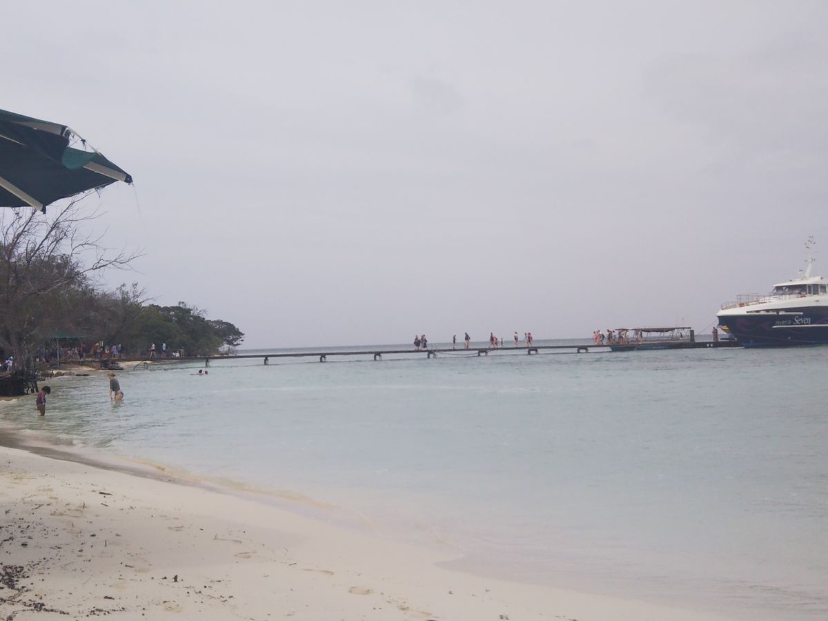 KBブリッジの袂をボートで出発して、15分ほどで到着したのは波の穏やかな島陰でした。