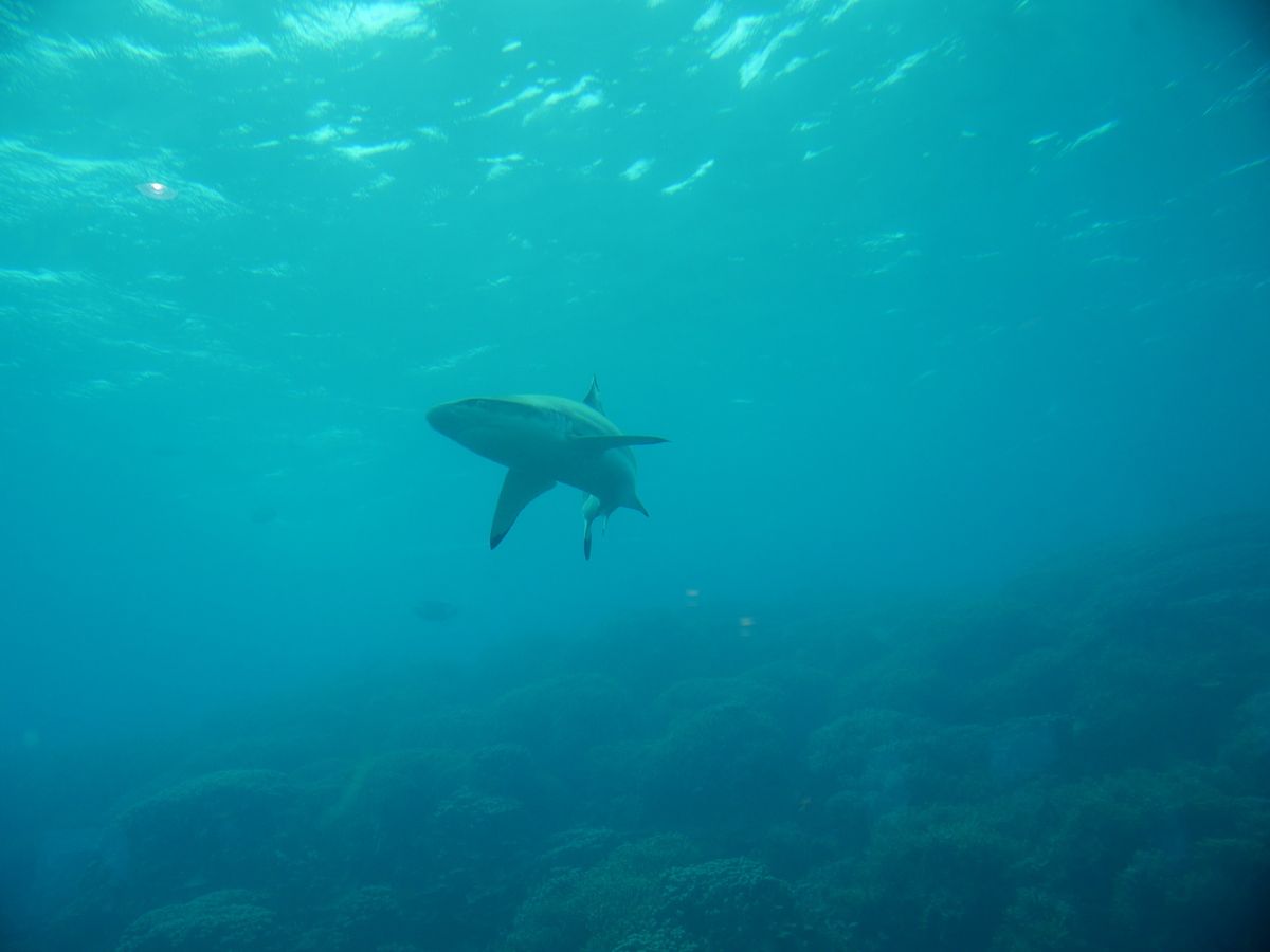 ウミガメ発見し一緒に泳ぎました。