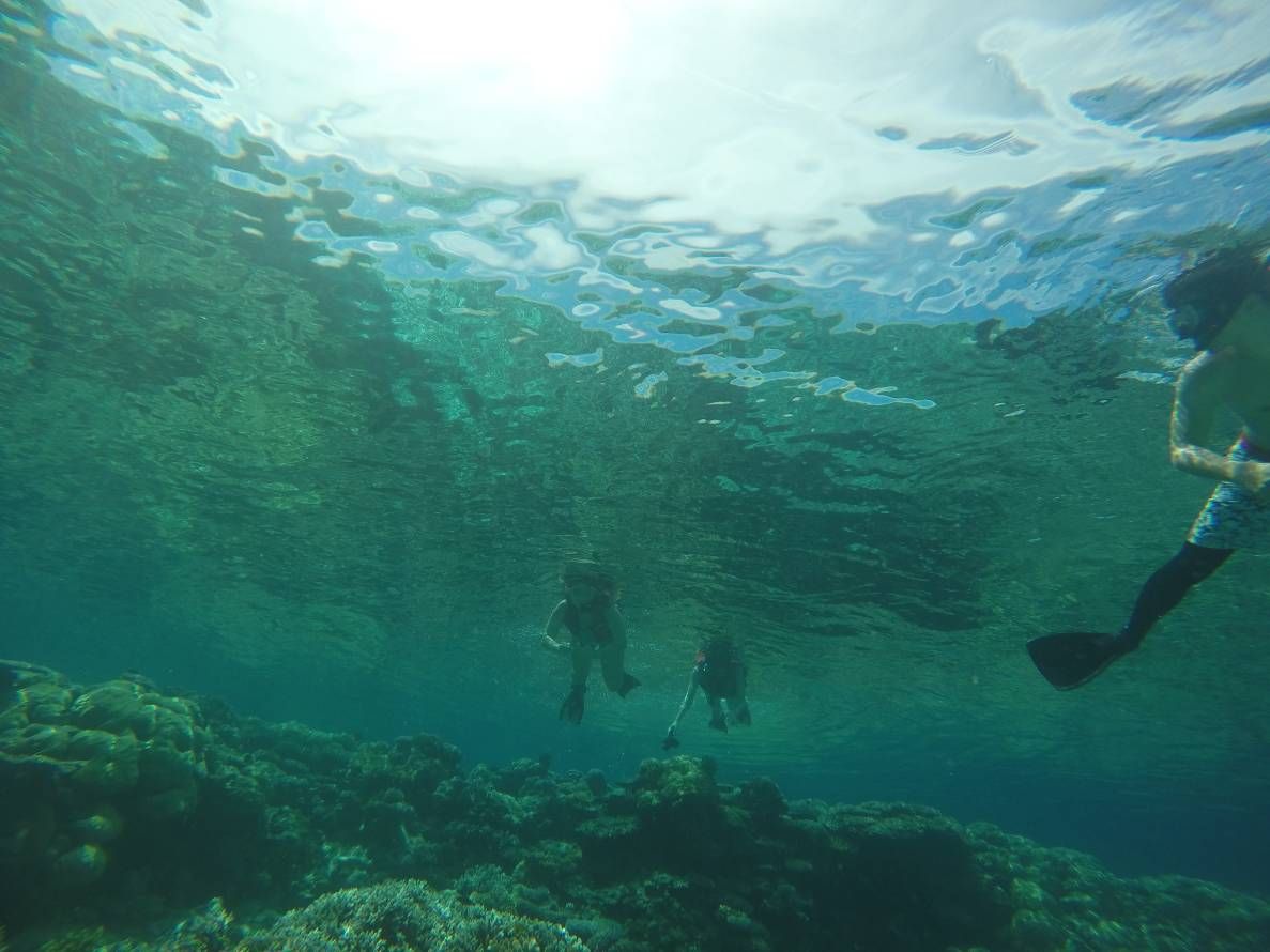 そしてポイントに到着し、まずはシュノーケリング。ガイドさんが一緒に泳ぎながら色んな魚を紹介してくれました。