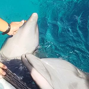 潜り始めるとイルカも同じように潜り、手に寄ってきてくれる瞬間は何度体験してもじーんといたします。