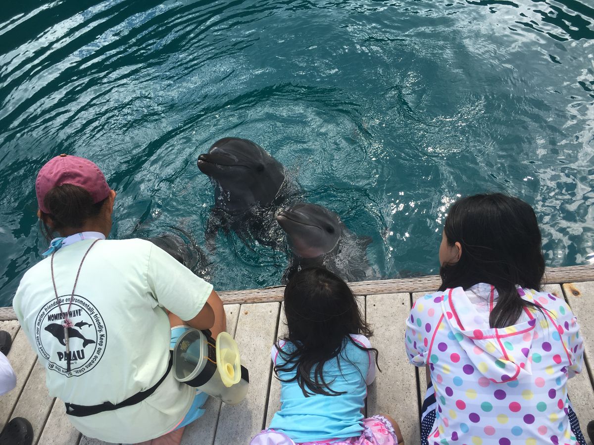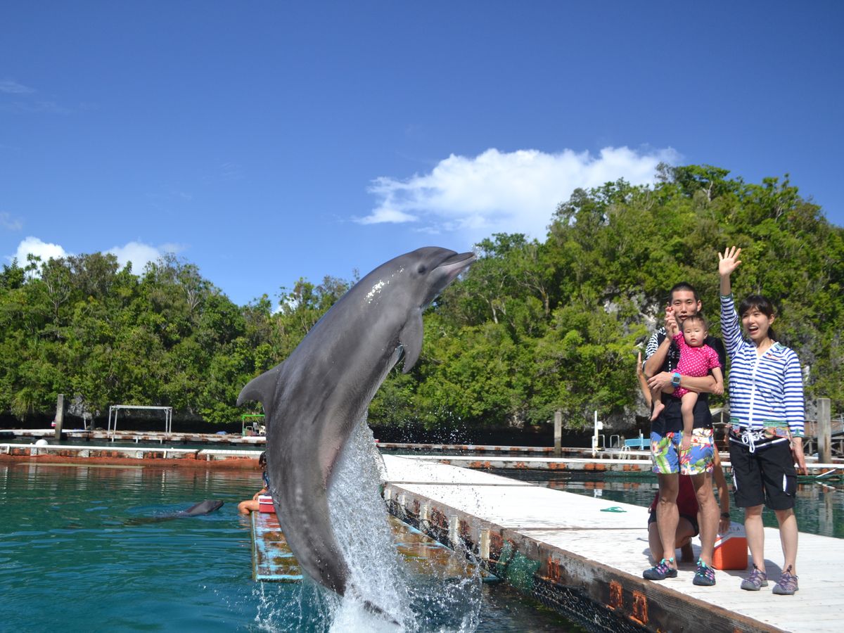 ここパラオならではの景色と共にイルカ達とのジャンプや、握手のお写真は旅の思い出にぜひともお勧めです。