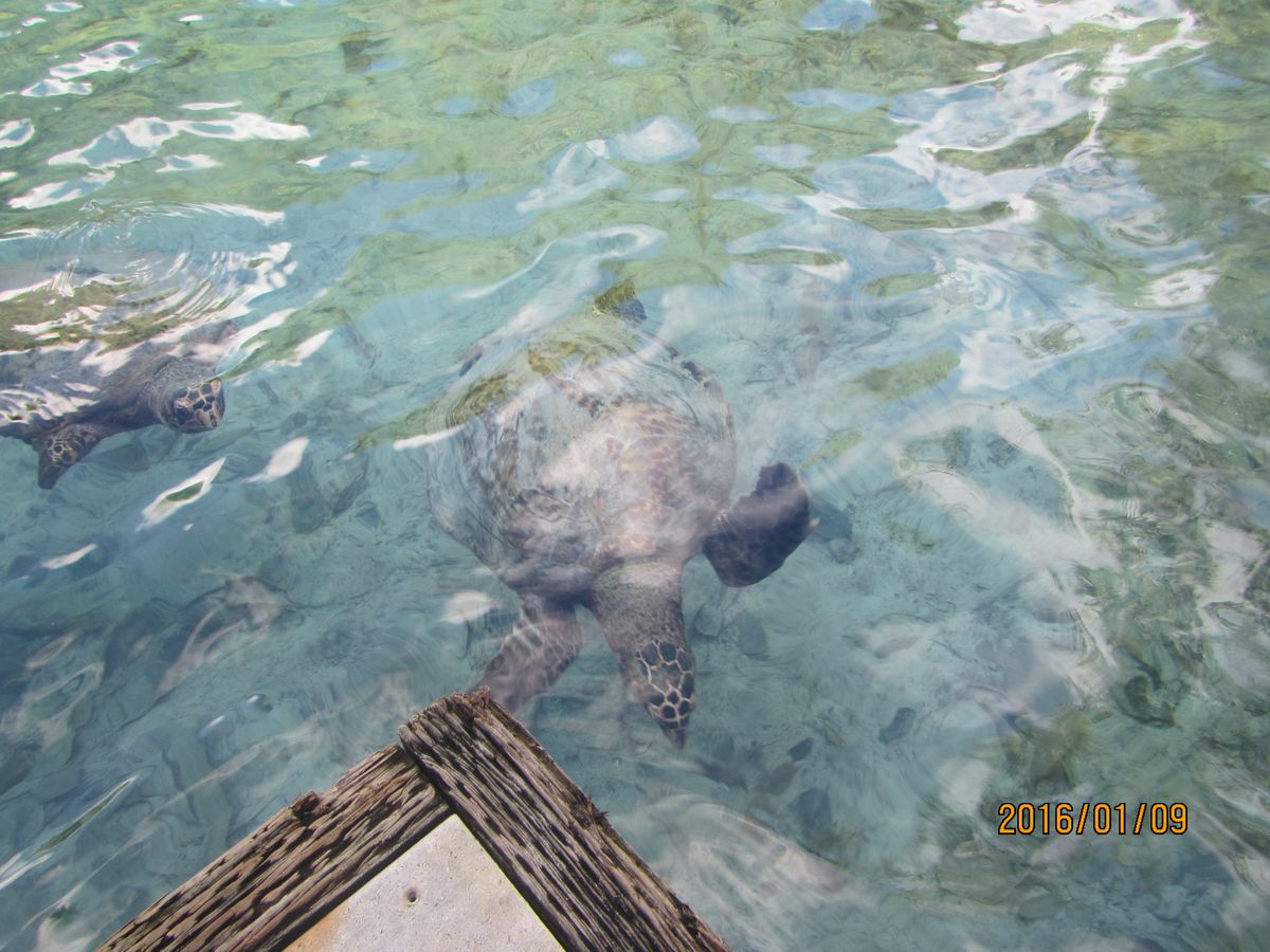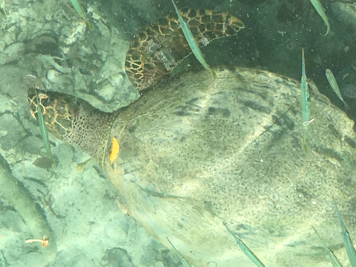 お客様がご覧頂いたのは、タイマイという亀の種類ではないかとお察し致しますが、ここでは亀や、時には小さなサメ、またエイなども見る事が出来ます。