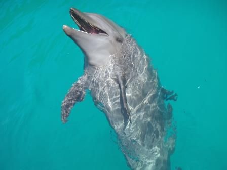 シュノーケルの実践を受け(散々別の場所でやってるので新鮮味がない。)ハンドサインの練習を受けようやくという感じです。実際イルカに触るときも人間は横一列に整列してその前をイルカが餌をもとめて右に左に往復するときのついでに触れる感じです。(それがシンフォニーといわれるものです)シュノーケルと水中眼鏡はそこでは使わなかったので、イルカと一緒のプールでは邪魔でした。イルカと一緒にフリーダイブで泳げることを想像していると間違いなくがっかりだと思います。イルカの体調が悪いときは背びれにのって引っ張ってもらうこともできません。今回はありませんでした。しばらくないと思います。
