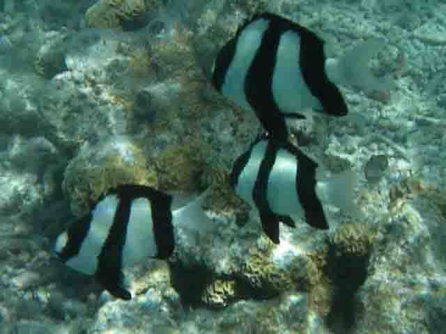 ミスジリュウキュウスズメダイ、タテジマキンチャクダイ、ツノダシ