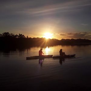 お客さんは簡単な説明を受けた後に2名乗りのカヤックに乗り早速出発。