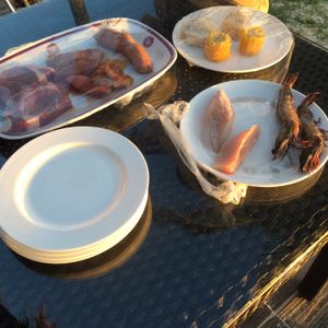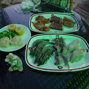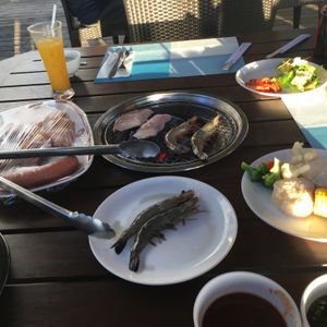 宿泊したカノアリゾートのプライベートビーチにあるBBQです。焼いて持ってきて貰うか、セルフで焼くか選べるのですが、他の方の口コミで焼いて持って来る方は一気に全部焼いてから持って来るので最後の方が冷めてるとあったため、セルフで参加しました。セルフは自分たちだけでしたがw自分で焼いた方が楽しいと思います。