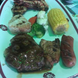 事前に予約していたので席はショーの目の前でとても良かった。BBQは食べごたえのある量であったが少し焼きすぎであった。