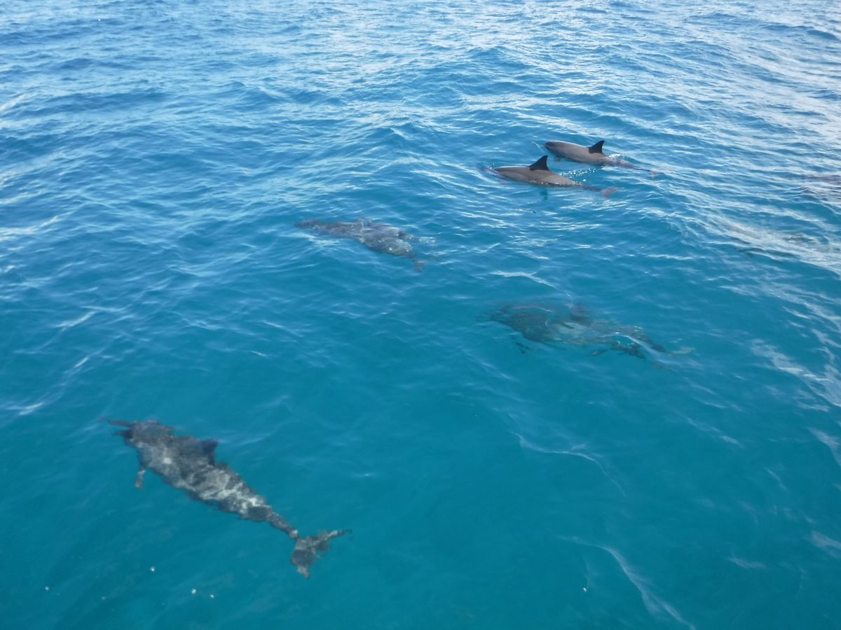 沢山イルカが泳いでいるところに遭遇♡♡ まるで、プールの中にいるみたいに綺麗な海の中、優雅に泳いでいました!真横に子どものイルカもいて、可愛かったー♪♪