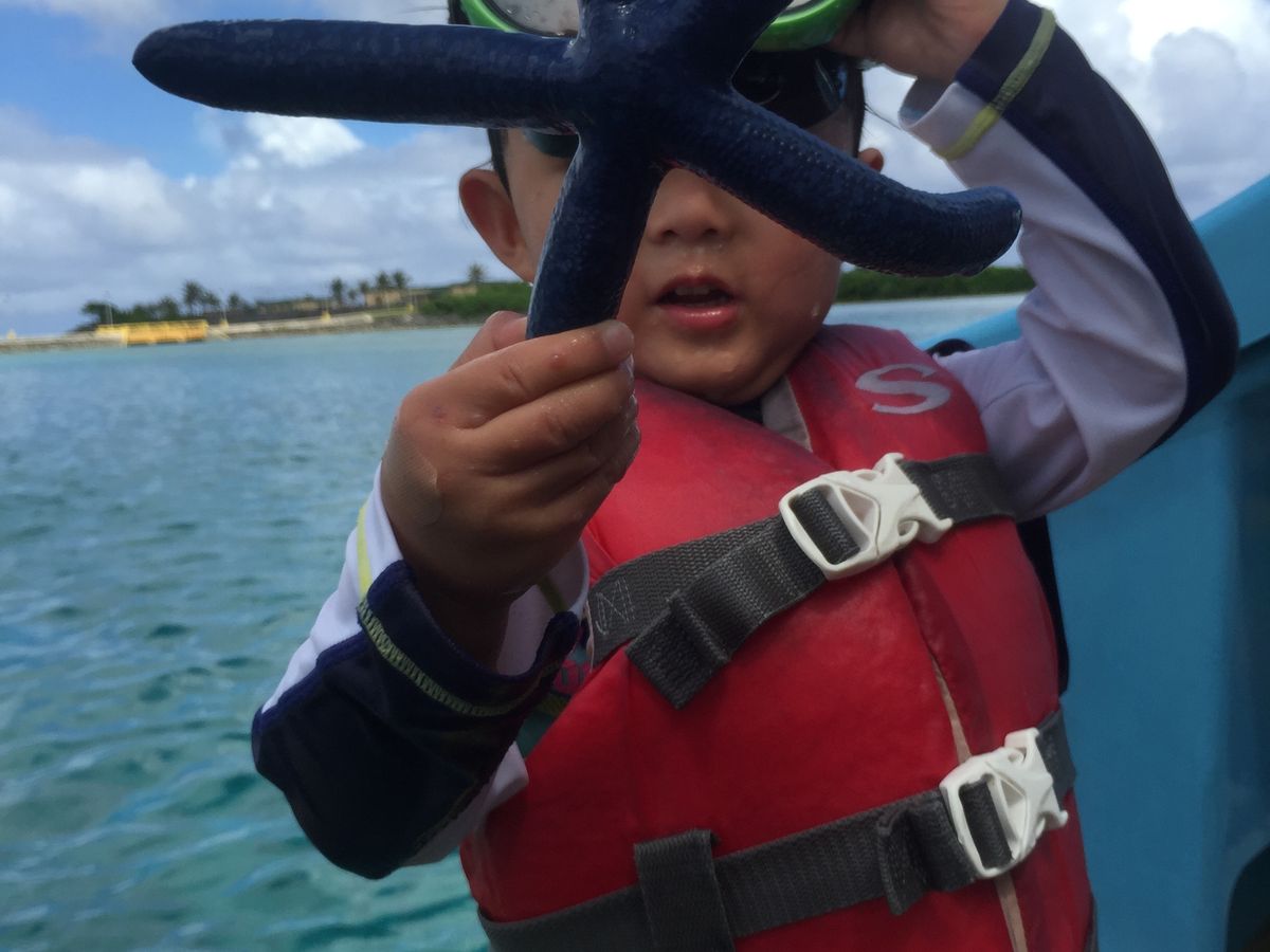 スノーケリング、1歳11カ月の息子を夫と交代で水上で抱っこしながら楽しみました。餌のいかを沢山くれて、こどももキャッキャ笑いながら餌を放っていました。