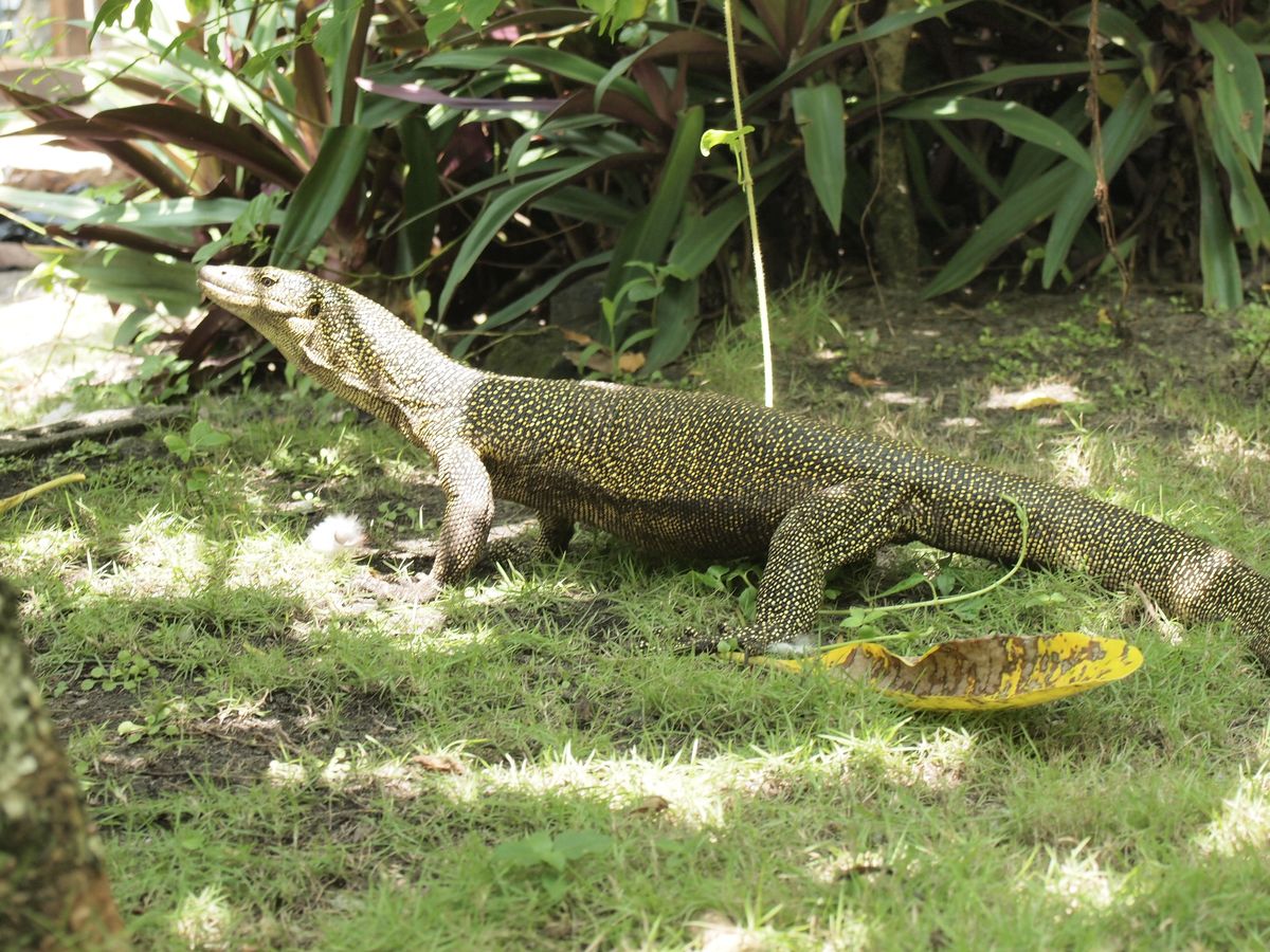 オオトカゲがいたり、葉っぱでお魚を作ったり、きれいな花の冠を作ってくださったり
