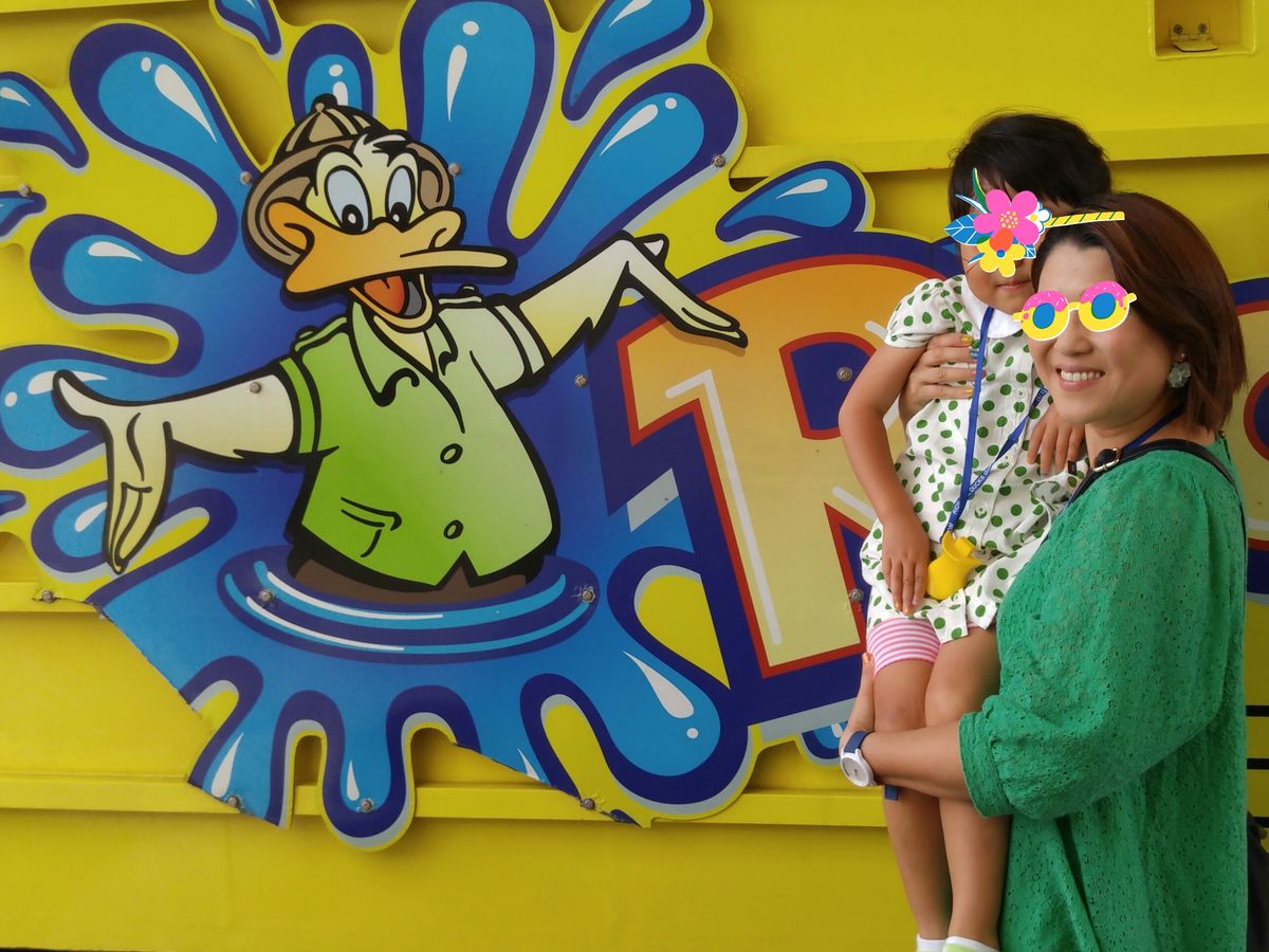 イルカがとてもうれしかったようで、子供はもっと見たかったと少しベソかいてしまいましたが、そのあとの水上すべり台に大興奮!!