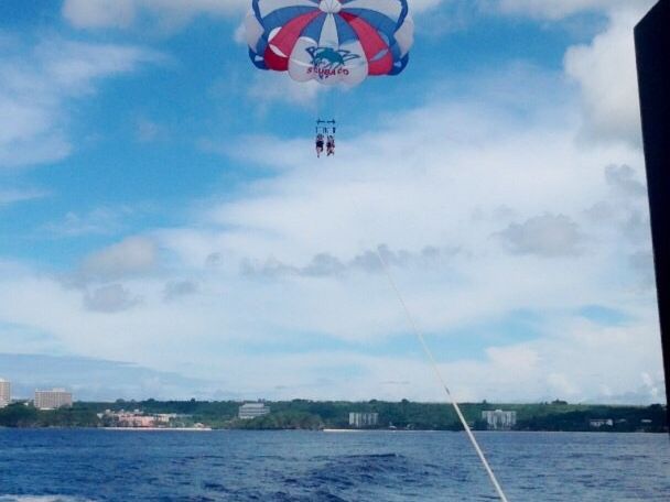 友人と初めてのグアム旅行!ビキニアイランドでパラセイリングやバナナボートなどができる盛り沢山なアクティビティに惹かれ申し込みました。行く前は高い料金だなと思ってましたが、今は安いくらいだなと思います。唯一残念だったのは、英語がわからなくてカメラや携帯など全てを預けてしまい、船の上やパラセイリングでの写真を撮ることができなかったことです…。