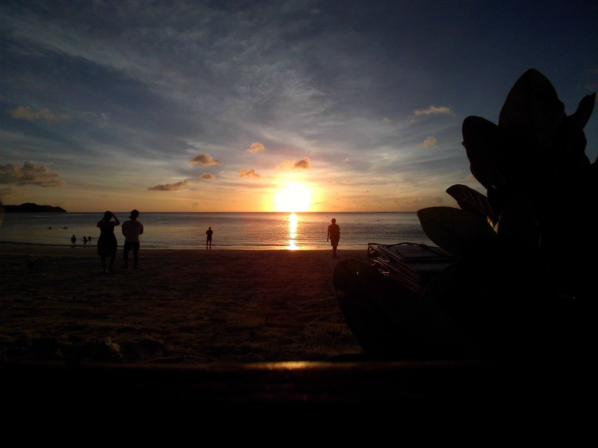 ちょうど水曜でチャモロビレッジでナイトマーケットがあったせいか,思っていたより空いていました.そのためか,海辺側の席でサンセット超キレイ!!ほんと感激でした!