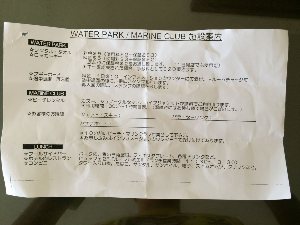 当日は台風の影響で波が高く、イルカウォッチングとバナナボートがキャンセルになってしまいました。