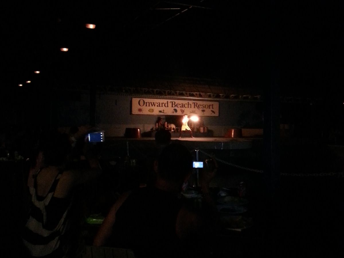 ディナーショー付きのBBQのうち、食べ飲み放題のパラダイスメニューにしました。BBQは屋根があったのでスコールの心配はいりませんでしたが、自分たちで焼くタイプなので、とにかく熱かったです。子供も 大人と同じ量を用意させており、食べきれないほどでした。奇抜なメニューはありませんので、安心して食べられました。他の口コミにかかれていたとおり、たれは薄かったでしたが、おかげで量をたべることができました。ショーも少数人数ながら楽しめました。子供が喰いついて見ていたので、ここにしてよかったです。最後にショーの出演者と写真を撮るときにはチップを用意しているとなおよし。