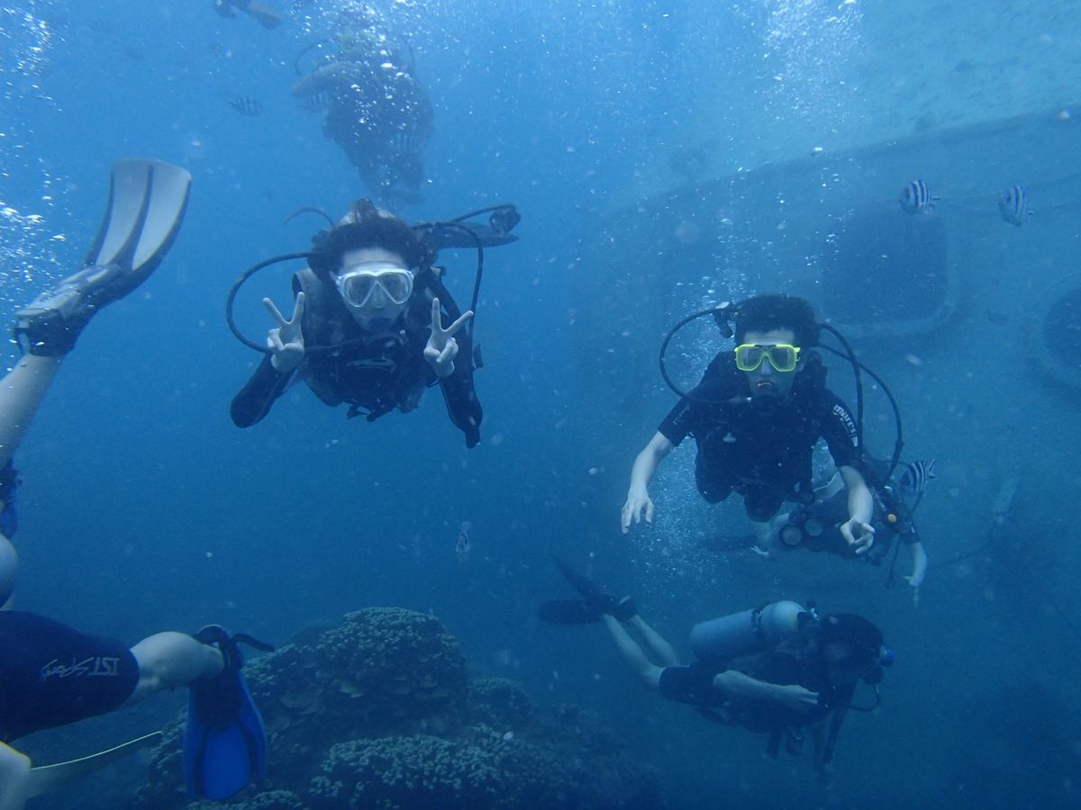 GUAMã«ã¯10åã»ã©è¡ã£ãŠãŸãããã€ãã³ã°ããããšãç¡ããäŒç€Ÿã®äžåžãšäžæãã§ããããšå°ãç·åŒµããªããæµ·ãžã