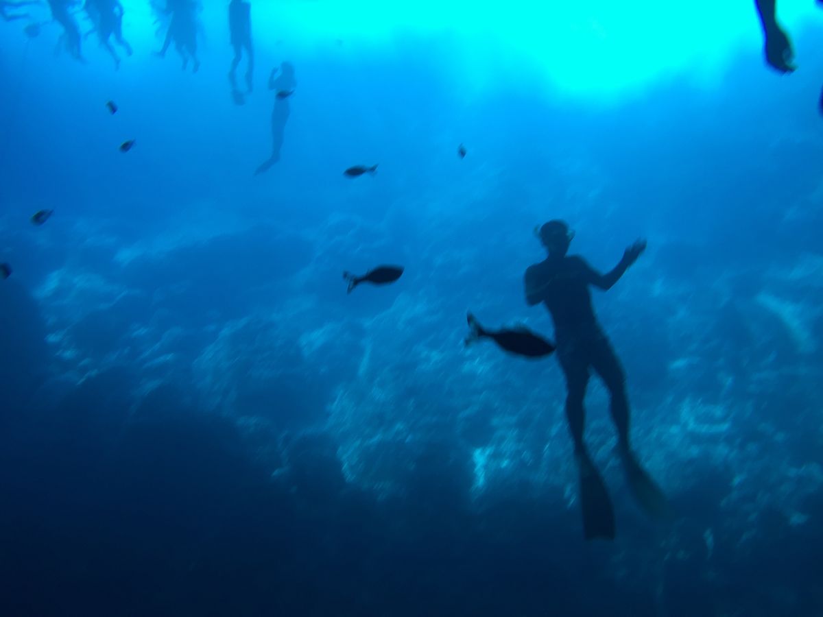 1日目の訓練で、いろいろ説明した後にすぐに海へ潜り、初めてで動揺して呼吸が苦しくなりましたが、5分ぐらいで慣れました。