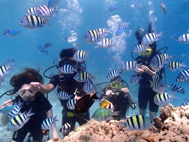 お迎えに来てもらったら既に車の中は大盛り上がりでした!やはり体験に行くとどんな方がいらっしゃるかわからなかったので不安でしたが一瞬で吹き飛びました♡ダイビングは2ダイブを選んだのですが1ダイブ目は怖いって思う気持ちもありましたが2ダイブ目は余裕が出て楽しむことが出来ました!他の口コミにもありましたが自分で泳げるダイビングでした!以前にも体験ダイビングやシーウォーカーやアクアコムもやったことありましたがここのダイビングが一番充実してやり遂げだ感や満足感が大きかったです!また午前中で終わるので時間無い旅行にも本当おすすめです!