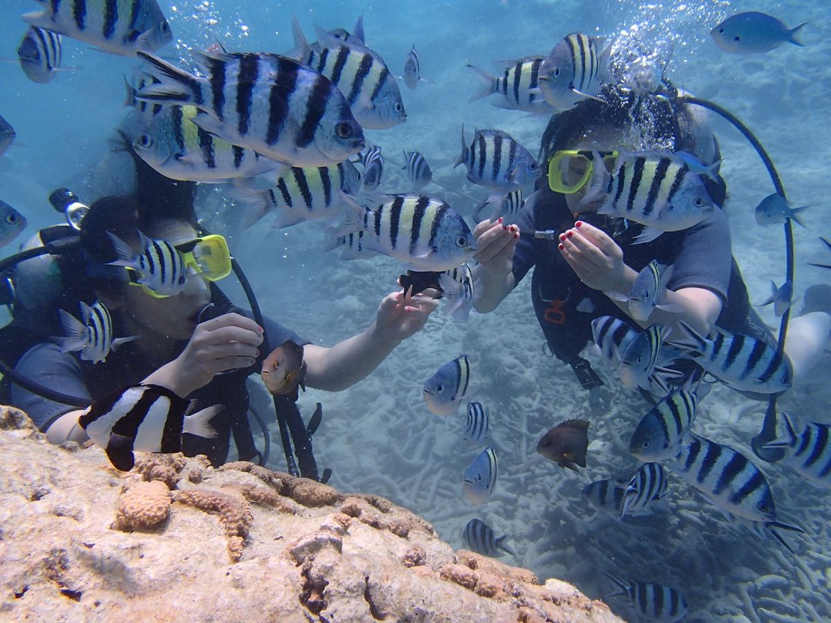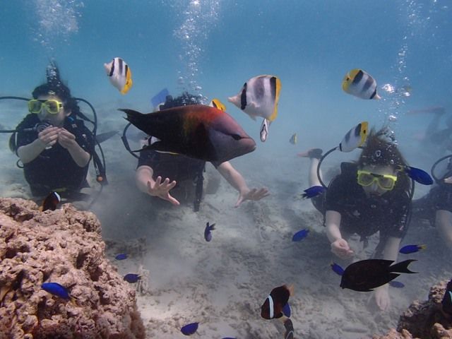 ジェットスキーは楽しかったですが魚のエサなんて無かったです。ツアーの詳細には書いてないのでそれも微妙なのですが、掲載写真と魚のエサ代が含まれていたので、シュノーケリング?みたいなものもあると思っていましたが、魚のエサもなく、ただジェットスキーで恋人岬に行って往復して帰ってくるだけでした。ビデオと写真代も別途40$と高いし、なんだかな〜
