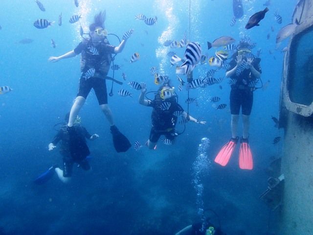 一応Cカード保有者ですが9年ぶりなので参加しましたが、「これは本当に体験レベル?」というほど2本目は深く遠く進み、海中展望塔の窓を覗いたり、沢山の魚を見たりできるのは凄いです。