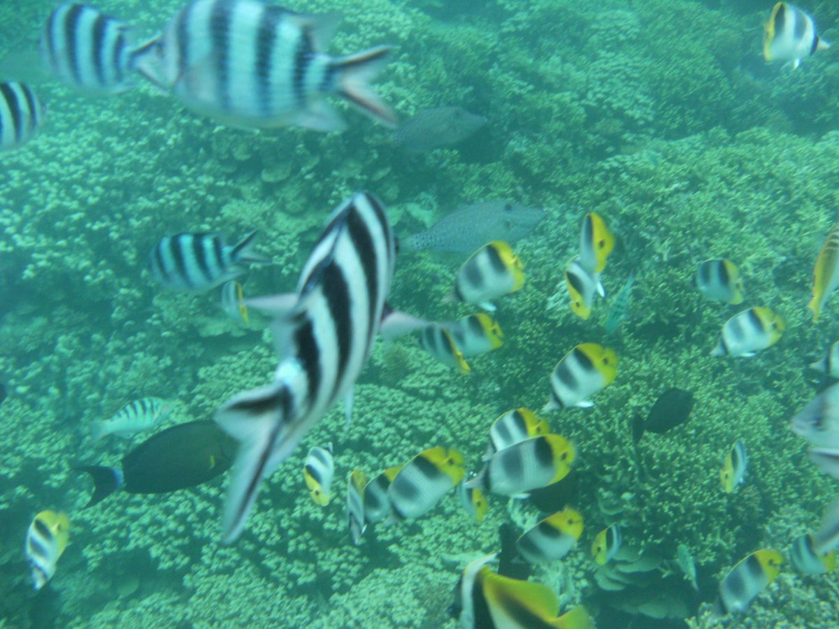 海の中にはいろんな色の魚もいて、シュノーケルでもダイビングと同じくらい楽しめました。