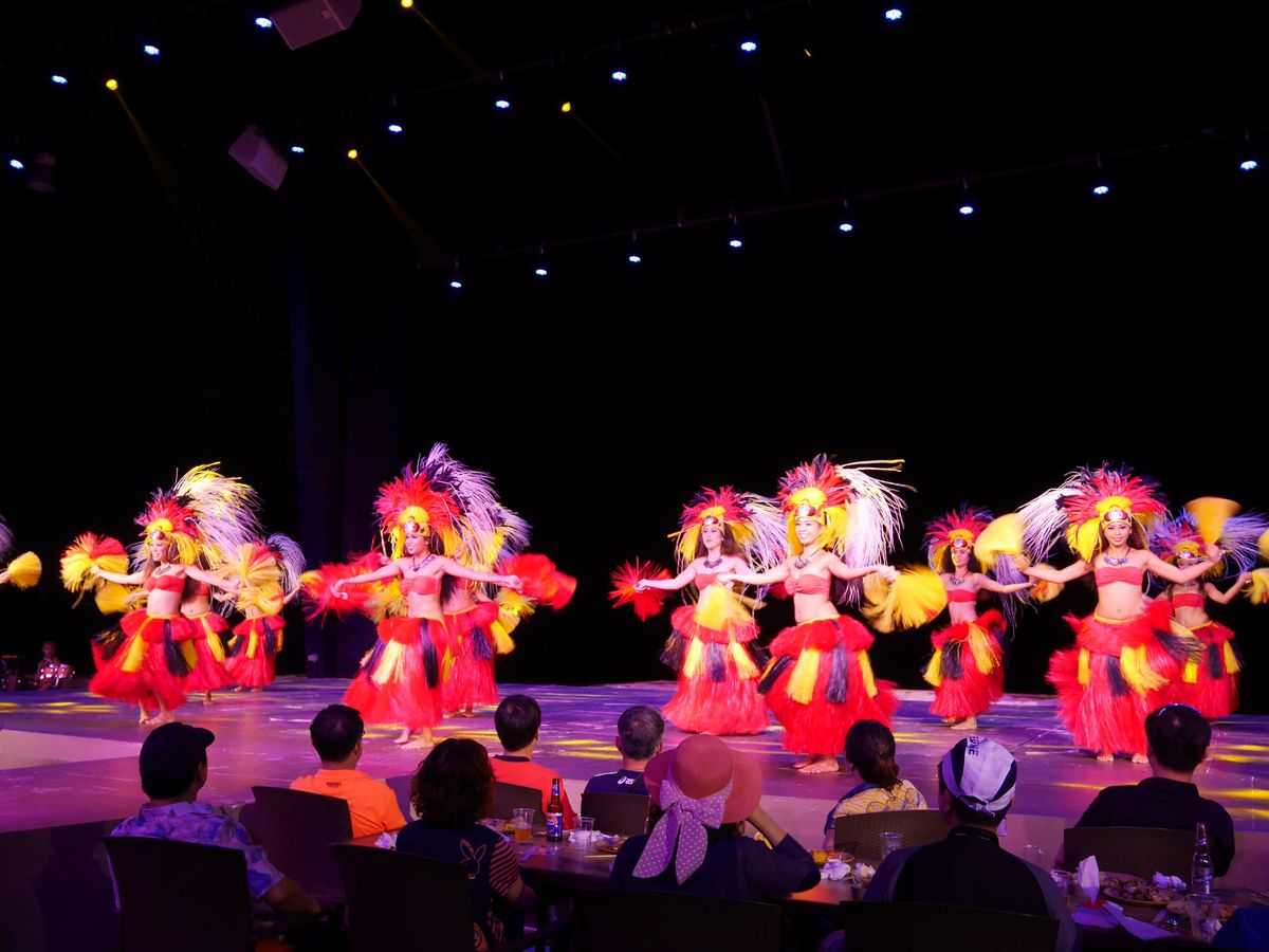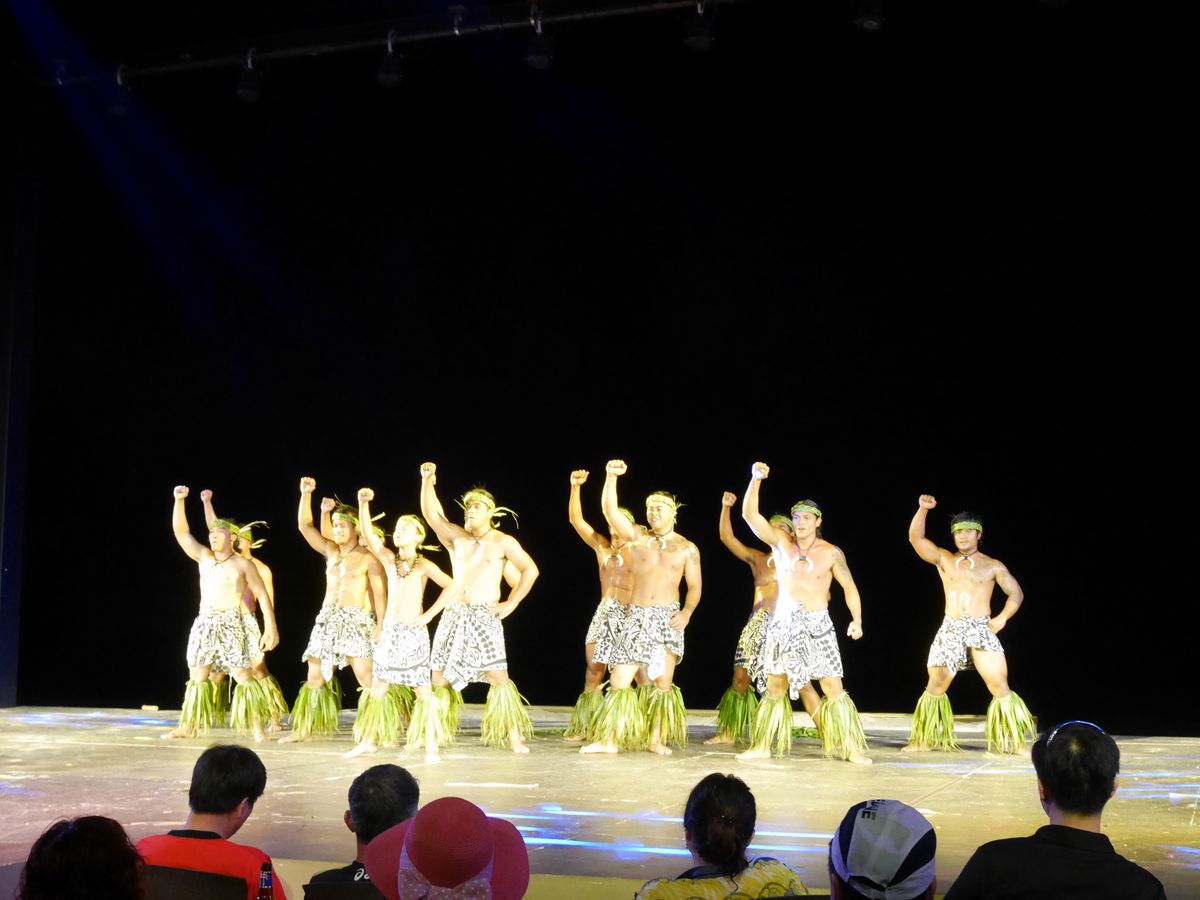 ポリネシアンショーは、南国を絵に描いたようなショーでした。ショーの最後にダンサーの女性が、ゲストの中から5名選んでステージでダンスのコンテストを行いました。