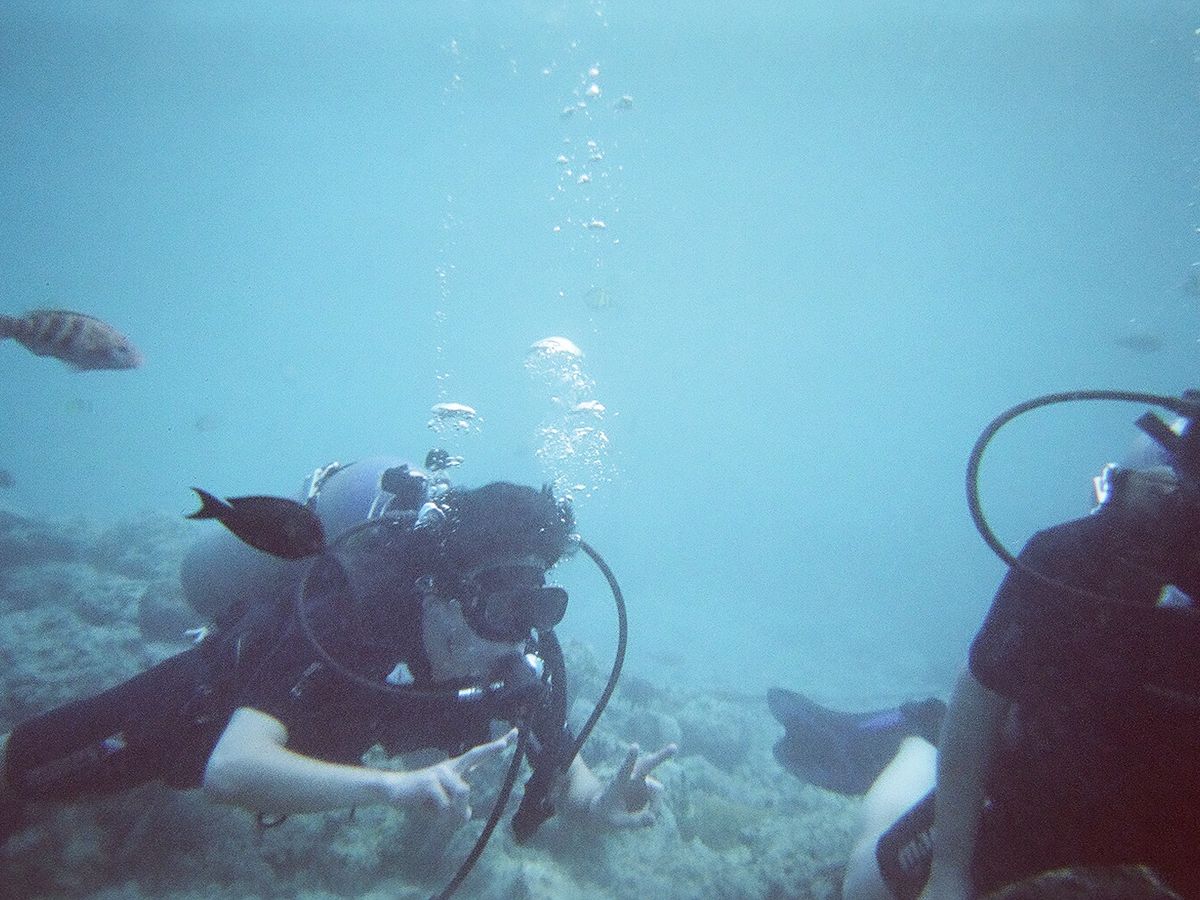 今回、勇気を出してチャレンジしました。水が怖い私ですが海の中で息ができる。不思議なかつ神秘的な世界に触れて大変よかったです。インストラクターのなおこさんはとても素敵で、親切かつ優しく教えてくださいました。本当に感謝しております。Gerryさんはダンディでかっこ良かったです。次回からグアムに行く時は必ずPan Pacific Divers でダイビングします。みなさんも是非Veltra でパンパシフィックダイバーズを選んでください。