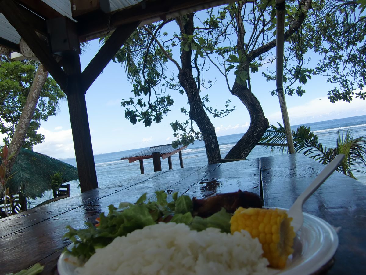 食事はライス、トウモロコシ、レタス、チキン、ウインナーを盛りつけてもらえ、残りはお代わり自由という形式でした。