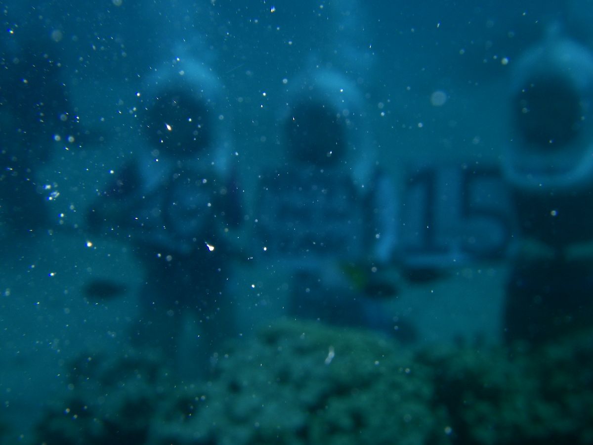 決して、バカにしていた訳ではないんですが、ダイビングもしたことがあるし、大人ばかりのグループなんで、どうかなとおもいつつ、参加しました。専用の浜辺から、海に入って行って頭(40キロもあるそうです。)を着けると同時に水中へ、だから少しも重くないです。ロープを伝いながら結構歩いていくと、そこで写真撮影、バブルリングを作ってくれたり、ジャンプさせてくれたり、50過ぎのおばさんでもハイテンションでした! 持って行った水中カメラが古いせいか途中で壊れて、あまり写真が取れなかったのは残念でした。