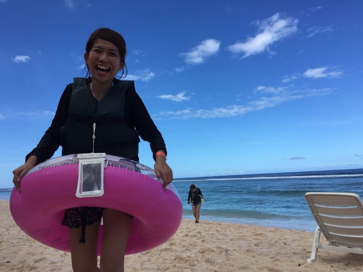ビーチ近くは波も穏やかで自分でコントロールすることができましたが、沖の方はうねっていて波も高く、飛ばされそうになりながらも、必至でインストラクターについていきました。
