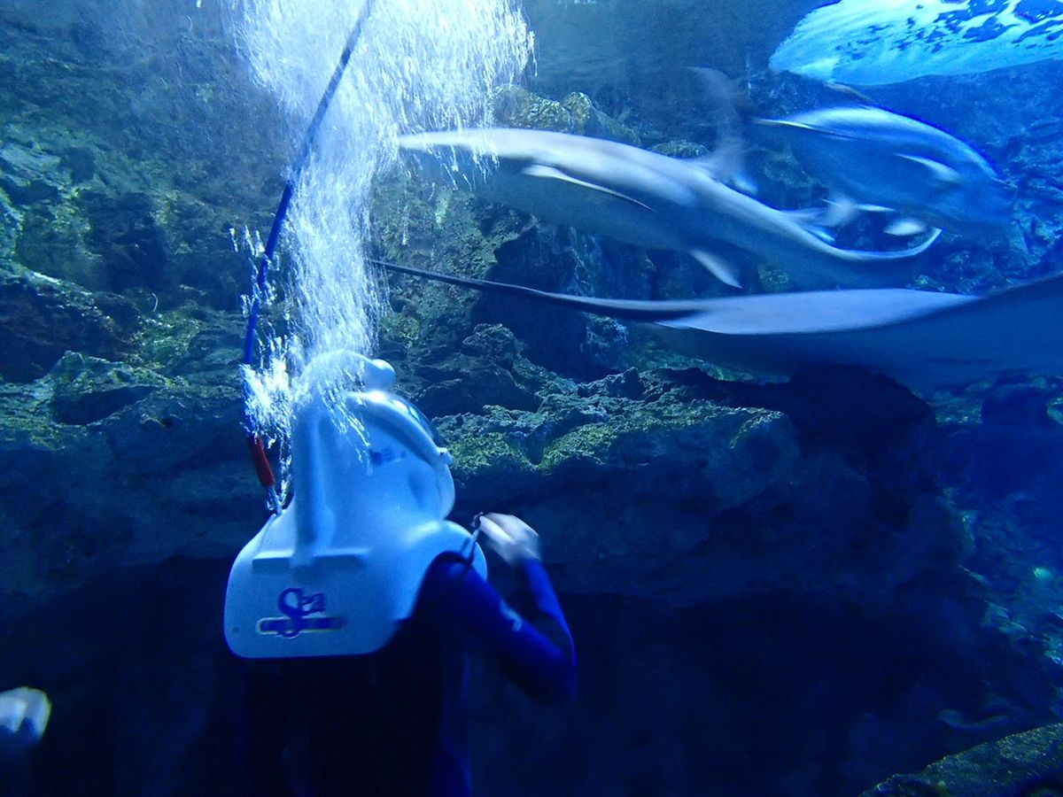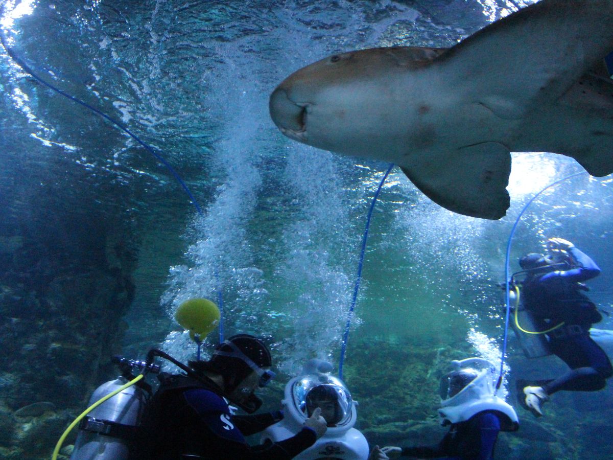 今回は主人と子ども二人が参加し私は見学しましたが、見学の私にも配慮していただきとても楽しく過ごせました。水槽の中の3人と水槽の外にいる私を一緒に写真に収めていただいたり、ガラス越しにタッチしたり・・・普段では絶対に体験できない体験ができました。本当に楽しかったです^^スタッフのみなさんありがとうございました。