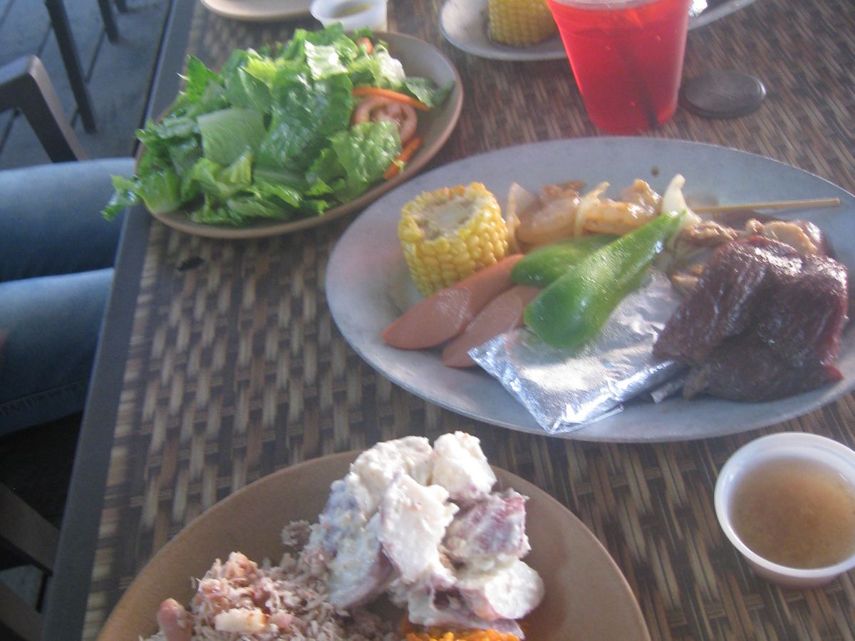 セイルズコースを予約しました。牛、鶏、ロブスター、エビ、野菜などボリュームたっぷり。サラダバーがあり、ライスとお味噌汁もありました。お願いすると店員さんが親切に焼いてくれ、たくさんソースを