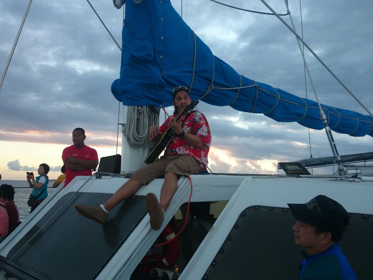 旅行の早い段階で申し込んでいましたので、一回目イルカをみることができませんでしたが、それでも、クルーズだけでもすごく楽しいですし、さらにシュノーケル(30分くらい)ですがきれいな海で魚に餌やったり、船についてる滑り台から海に飛び込んだり、トランポリンもあって子供は大満足でした。またガイドのジローさんがとても話が上手で満足でした。さらに帰りにはお弁当ももらい、そして、お土産か、再チャレンジの選択があり、我が家は日にちにゆとりがあったので次の日に再チャレンジしました(お弁当はつきませんが無料です)。次の日(案内はまたジローさんで子供はもうジローさんとのトークに夢中でした)は運良くイルカがたくさんんみれました。さらに海でも遊べて、同じ金額で2回遊びに連れて行ってもらえてとてもいいツアーでした。またグアム行くときはぜひ申し込みたいと思います。