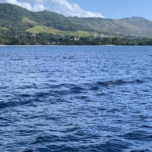 船に揺られ、はじめにダイビングの指導を受けました。素敵な景色を見ながらしばらく船に乗って、イルカウォッチングをしました。体験談には見れない時もあるとあり、心配でしたが運良く、イルカを見ることができました!とても可愛く、自然のイルカは初めてで、興奮しました!
