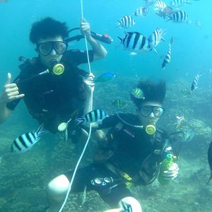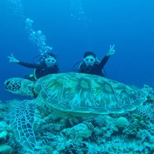 午前のワンダイブに参加しました。友人は泳ぐことが苦手でビーチからのダイブでは、酸素ボンベをダイブする場所まで運ぶことがかなり大変で、生まれたての子鹿のようでしたが、スタッフさんにかなり助けて頂きました。初めてのダイビングを楽しむことができました。インストラクトもとても面白かったです。ダイブ中に、バブルリングも見せて下さいました。魚も身近にたくさん見ることができ、感動しました。本当にありがとうございました!