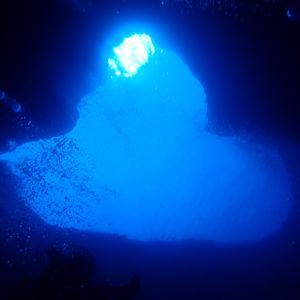 30m以上も潜るブルーホールは、最初はちょっと不安でしたが、下から見上げたハートマークの洞くつの入口は、とても神秘的に感じ、感動しました。